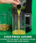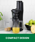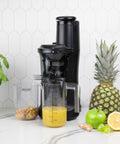 The Omega Vertical Wide Mouth Cold Press Juicer (not available in the U.S.A, Canada, or Mexico) crushes the competition with its 55 RPM cold press technology that locks in nutrients and enzymes your body craves. Feed whole fruits and vegetables through the 3-inch mouth—no chopping required. High torque extraction squeezes every drop of juice from your produce, while the anti-clog reverse function keeps things flowing. Whisper-quiet operation, compact vertical design, and dishwasher-safe components make this juicer a bold addition to any kitchen. Includes juice container, pulp container, pusher, and brush to get started immediately.